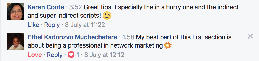 By purchasing your HOME STUDY COURSE you will be able to watch the whole training event in our private NETWORK MARKETING BOOTCAMP Facebook Group, DOWNLOAD all the SLIDES, HANDOUTS, SCRIPTS and OTHER RESOURCES that we have added to this group, and ask questions inside the group and get answers!